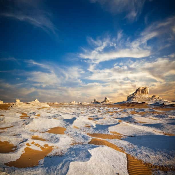 O Deserto Branco do Egito encanta com formações de giz surreais, fósseis marinhos, cristais de quartzo e céus estrelados em paisagem única.